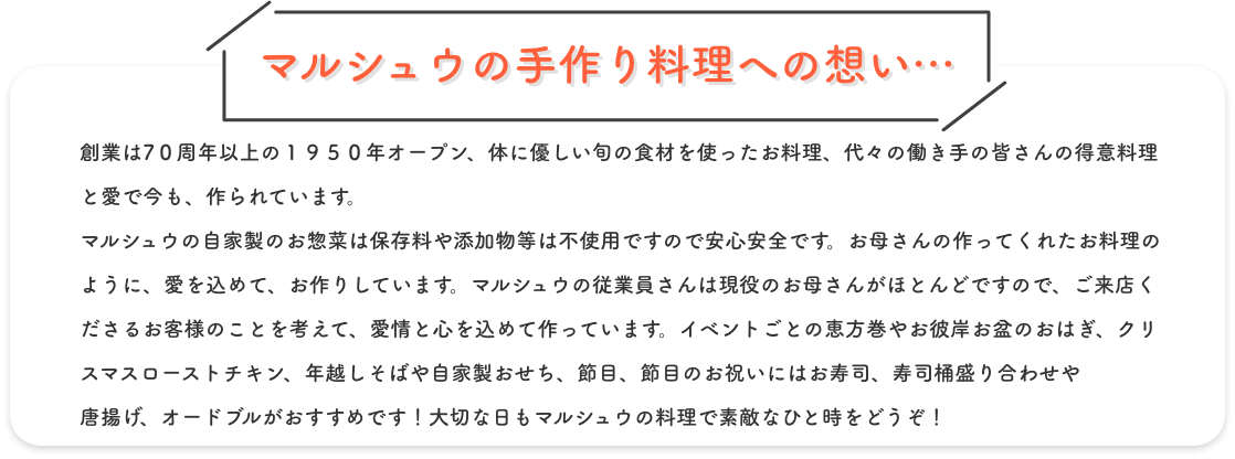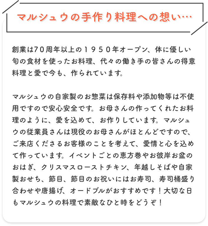 マルシュウの自家製のお惣菜で